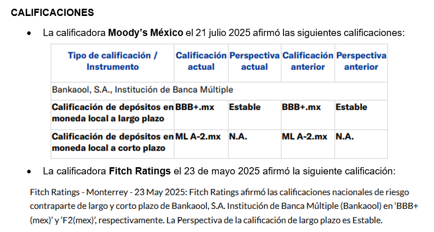 1. Las calificadoras Moody´s y Fitch afirmaron sus calificaciones con perspectiva a largo plazo, se recomienda la lectura detallada de los comunicados de prensa que emitieron ambas instituciones.