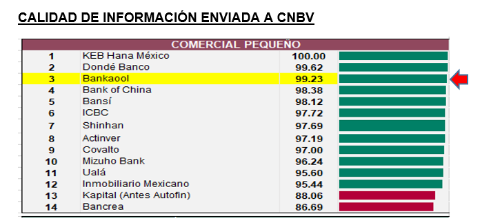 3. En cuanto a la calidad de la información que envían a CNBV, la autoridad le asigna una calificación cercana al 100% lo que indica que cumplen en tiempo y forma con sus reportes regulatorios.