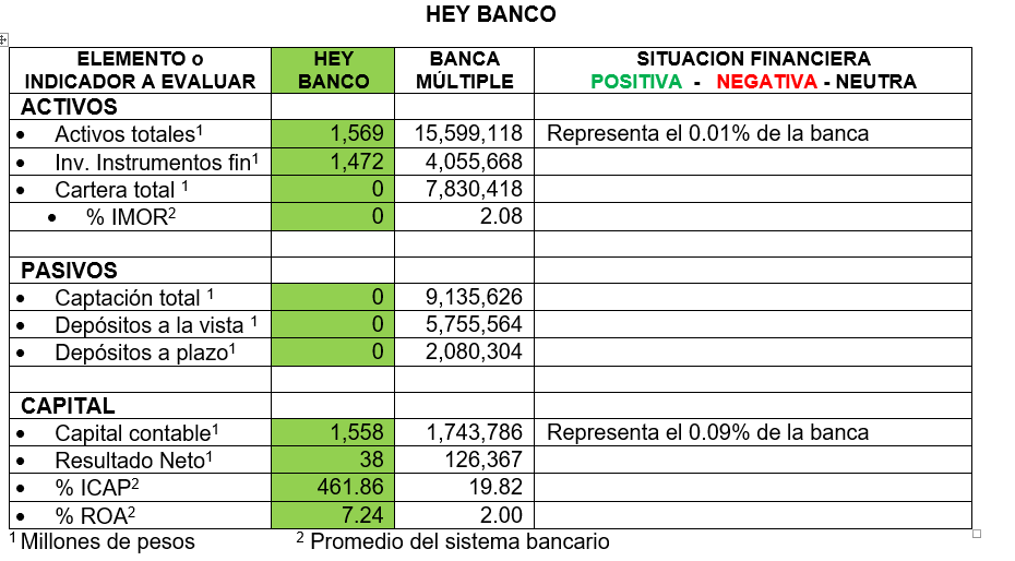 CONCLUSIONES DEL ANÁLISIS FINANCIERO DE HEY BANCO: NEUTRO