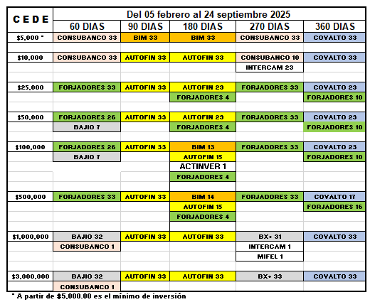 - Los plazos y rangos de inversión, los homologamos con los más utilizados por la clientela bancaria para evitar presentar una lista interminable de ellos.