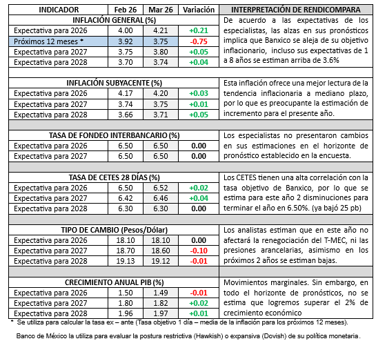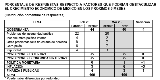 ENCUESTA DE EXPECTATIVAS ECONOMICAS marzo 2026