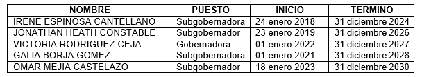 Sólo como referencial, se presenta la vigencia de los periodos de los miembros de la junta:
