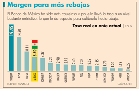 El concepto “ex ante” es una expresión latina que significa “antes del evento”, la tasa real ex ante es determinada por Banco de México al restar a la tasa objetivo o de referencia, la media de inflación esperada en los próximos 12 meses.