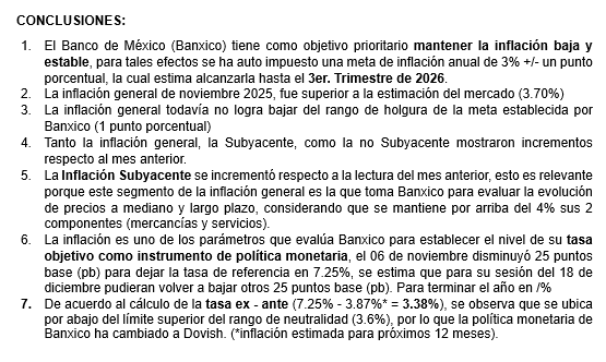 ENCUESTA DE EXPECTATIVAS ECONOMICAS BANXICO diciembre 2025
